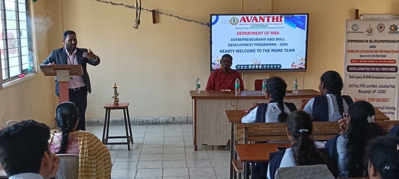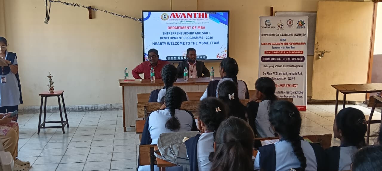 The Management, Staff, and Students of Avanthi Group of Colleges cordially invite aspiring entrepreneurs, students, and stakeholders to participate in this initiative aimed at promoting entrepreneurial mindset, innovation, and skill enhancement.