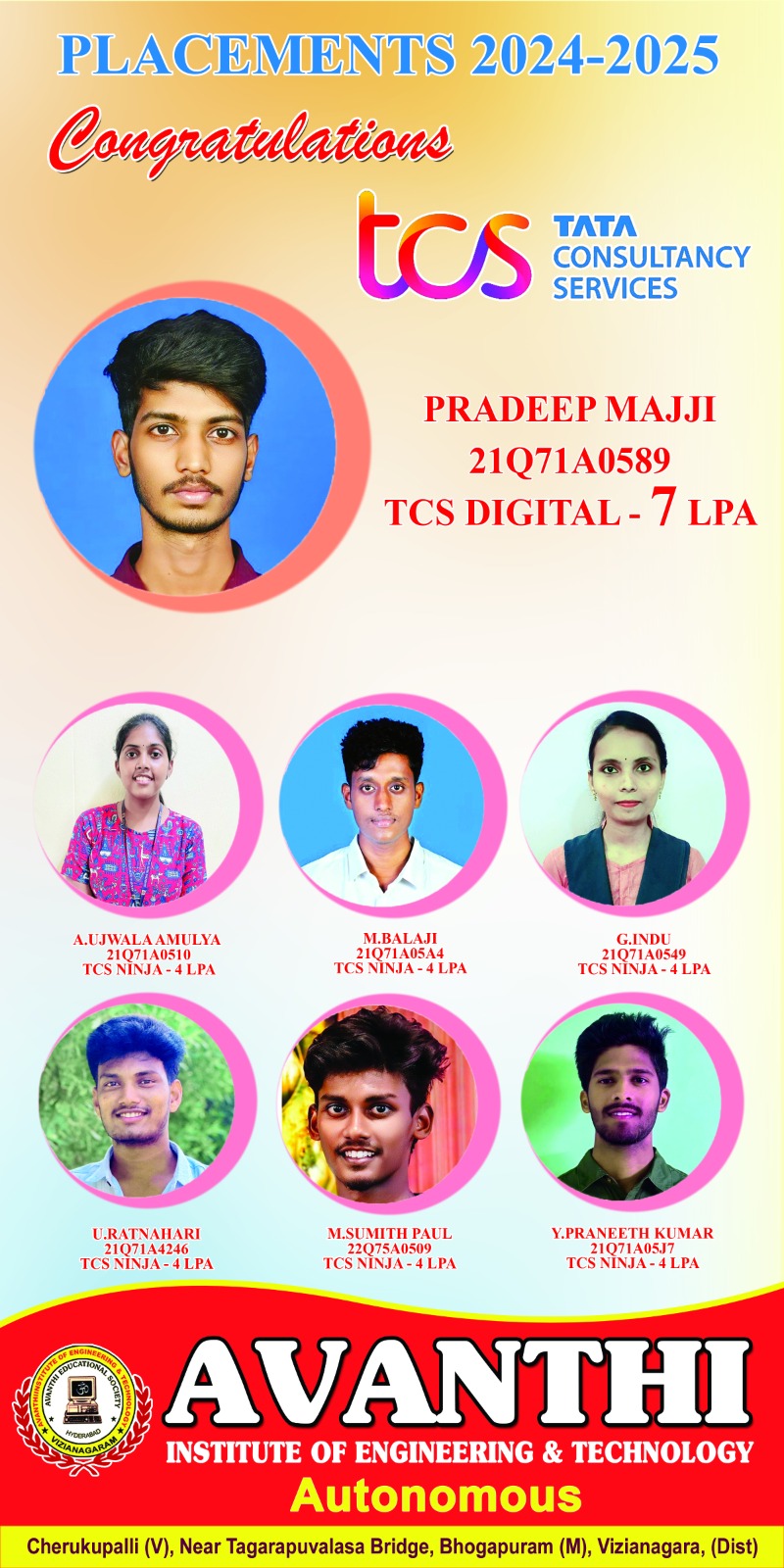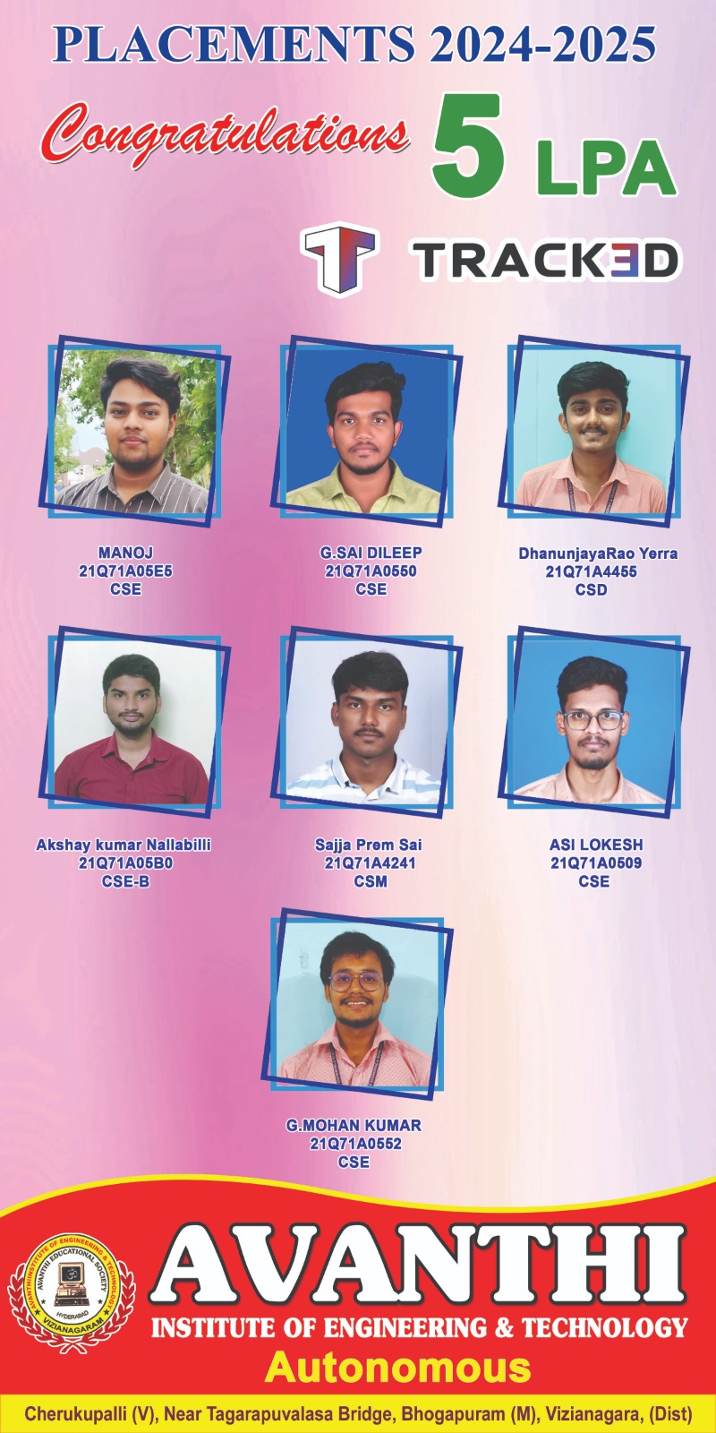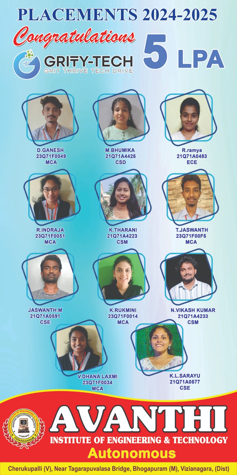 Congratulations to the students for selection in Infosys Ctc 4.45LP