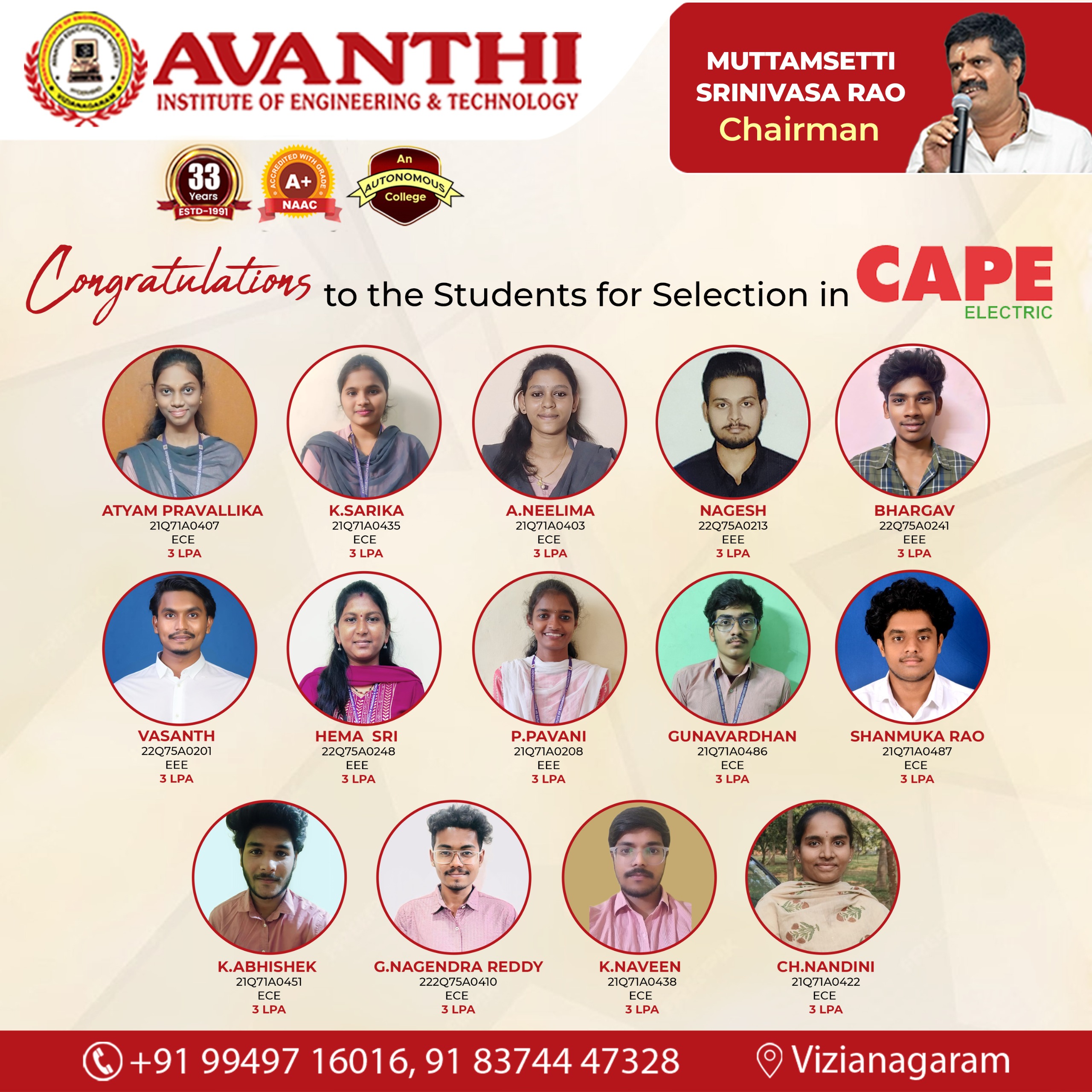 Congratulations to the students for selection in cape electric company