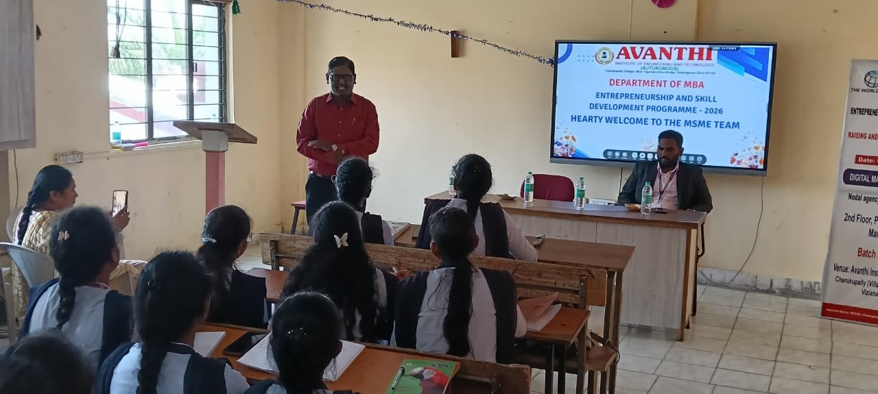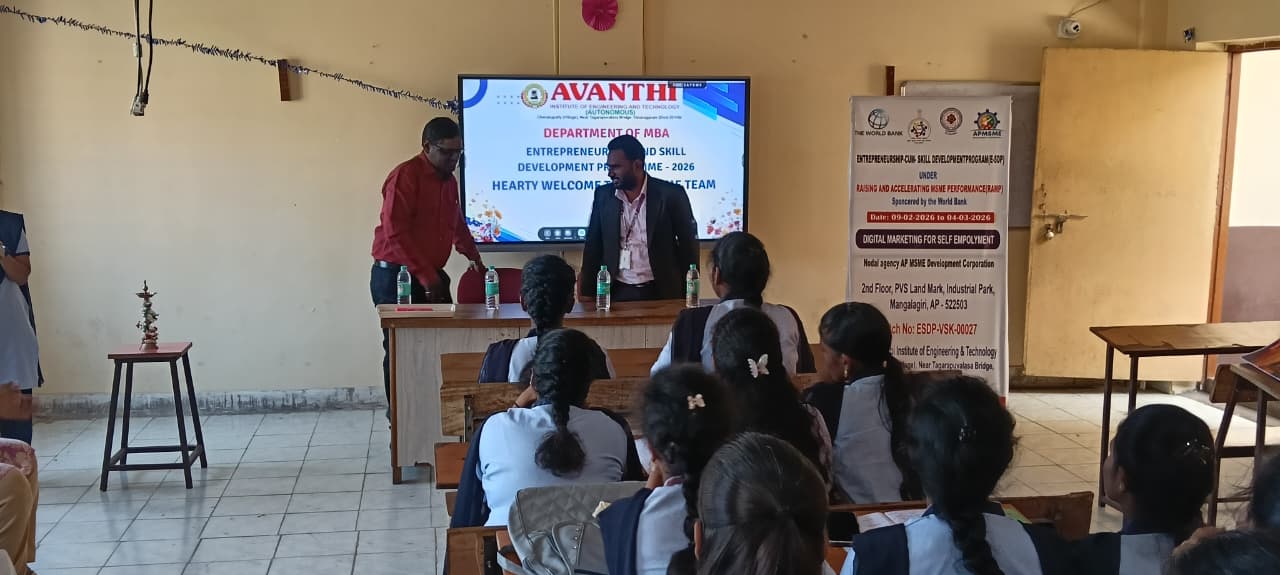 The Management, Staff, and Students of Avanthi Group of Colleges cordially invite aspiring entrepreneurs, students, and stakeholders to participate in this initiative aimed at promoting entrepreneurial mindset, innovation, and skill enhancement.