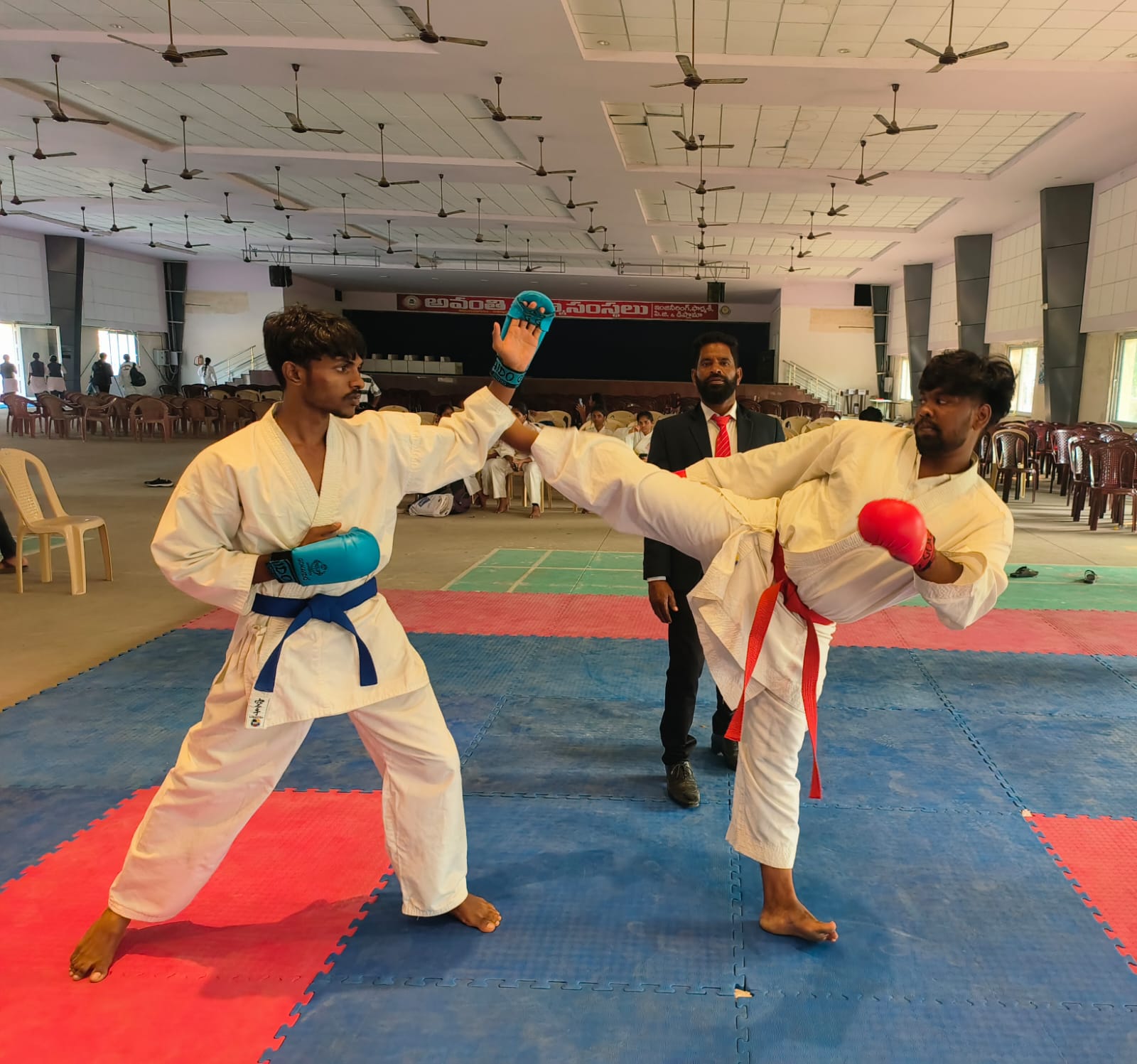 The chief guests for the program were Avanthi College Director Dr. A. Chandra Shekhar and Principal Murali Krishna. They formally inaugurated the Karate and Taekwondo selection trials. A total of nine colleges participated, with 27 students competing in Karate and 11 students in Taekwondo. The competitions were engaging and witnessed keen interest from the audience.